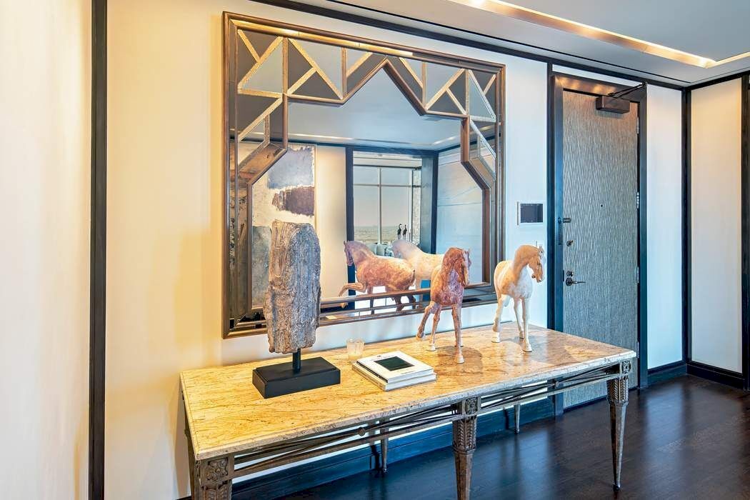 Perched on the 54th floor of One Beacon Court—New York’s most prestigious modern landmark with a private circular driveway, designed by renowned architect Cesar Pelli—this stunning penthouse, meticulously crafted by internationally acclaimed interior designer Jacques Grange, occupies the coveted front corner and offers commanding panoramic views. Forty floor-to-ceiling windows and soaring ceilings frame breathtaking vistas of the city and beyond. Light floods every room, highlighting bespoke design details and creating a sense of airy elegance throughout. Masterfully proportioned rooms include a large rectangular entry Gallery and the 30’ x 20’ corner Living Room which seamlessly opens to the Library and Dining Room—all spanning a magnificent 77’ of uninterrupted entertaining space. The serene Primary Bedroom Suite enjoys magnificent Central Park views from every window—including the light-filled, spa-like Bath. A gracious 29’ x 15’ Bedroom and a custom designed Dressing Room lined with closets and built-in shelving complete this luxurious retreat. Conveniently located in a separate wing are two additional Bedrooms, each with an ensuite Bath. The stunning Poggenpohl Kitchen is outfitted with top-of-the-line appliances, sleek cabinetry and a breakfast room ideal for casual dining or morning coffee with a view. A proper Laundry Room and a guest Powder Room complete this exceptional home. Designed for effortless living, the residence offers three entrances for the use by guests and staff. The flawless renovation includes state-of-the-art lighting, motorized window shades, an audiophile sound system and major architectural finishes throughout. Every detail has been thoughtfully curated to blend luxury, comfort and function in this truly world-class home in the sky. One Beacon Court residents enjoy exceptional amenities including a fully equipped fitness center on the 21st floor with skyline views, a children’s playroom, private entertainment suite, business lounge, full-time doorman and concierge, and round-the-clock valet parking. The building is ideally located in coveted proximity to the city’s premier shopping destinations, Michelin-starred dining, cultural landmarks, and the tranquility of Central Park. This is a co-exclusive with Brown Harris Stevens.
