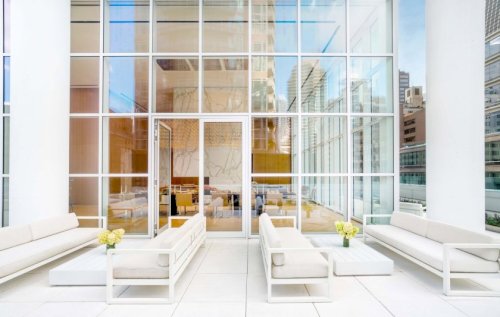 This remarkable, half-floor corner 1,720 square-foot, two-bedroom, two-and-a-half bath residence features a deep wraparound terrace with north, south, and west exposures overlooking Central Park and the Midtown skyline. The floor-to-ceiling glass windows and expansive 10\" ceilings tie the inside/out living concept together perfectly. The 571 square-foot terrace seamlessly connects the great room to an open kitchen...