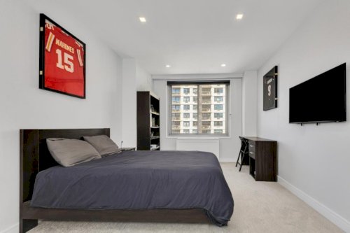 Bright, Serene One-Bedroom with Balcony & Soaring Downtown Views\r\n\r\nStep through the front door and feel the city’s pace melt away. Triple-width picture windows draw sunlight deep into a spacious living room, while a gracious entry foyer off to the side easily converts to a dining alcove or work-from-home corner without intruding on your relaxation zone. \r\n\r\nJust beyond the glass, your private balcony overlooks the...