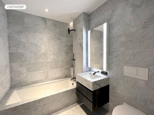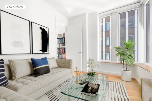 Welcome to your sun-filled 1,080 sq. ft. sanctuary that sets a new standard for luxury living in the Financial District (FiDi). This versatile layout, convertible to two bedrooms, combines generous scale with premium, contemporary finishes. An elegant entry leads into the vast, open-concept living room, where light pours through oversized windows and reflects off the rich oak hardwood floors. The space flows effortlessly...