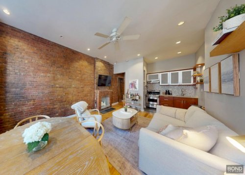 Its one flight up to these expansive living quarters defined by lofty 10-foot ceilings, recessed lighting, and oversized parlor-floor windows that bathe the home in natural light. This gorgeous apartment features a renovated bespoke kitchen, sleek bathroom with stone tile and frameless shower and a charming decorative fireplace at the heart of the home. A north facing window, original exposed brick accent wall and a...
