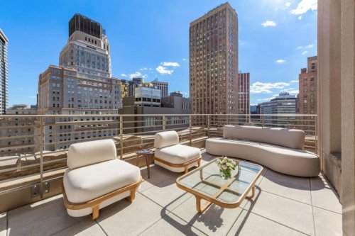Welcome to an exquisite duplex penthouse located on Broad Street in Manhattan's iconic Financial District. This modern masterpiece, crafted by renowned designer Philippe Starck, offers an elegant living experience that spans just under 3,000 square feet on the 39th and 40th floors. Revel in breathtaking water views and a mesmerizing city skyline from every corner of this luxurious abode. The expansive living area...