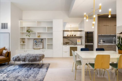 This triple-mint corner residence is a refined interpretation of the iconic Tribeca loft aesthetic, featuring slender whitewashed oak plank floors, soaring ceilings, and nearly floor-to-ceiling windows that flood the home with natural light. The bright and expansive living room is framed by oversized windows, offering privacy, abundant light, and custom built-ins that flow effortlessly into the sleek, modern kitchen. The...