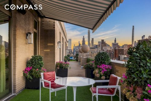 Perched atop 145 East 76th Street, this full-floor penthouse is defined by exceptional light, scale, and sweeping skyline views in all four directions.\nA private, fob-locked elevator opens directly into the residence, where 12-foot ceilings and wraparound exposures immediately create a remarkable sense of volume and openness. The home is encircled by approximately 1,150 square feet of planted terrace space, offering a rare...