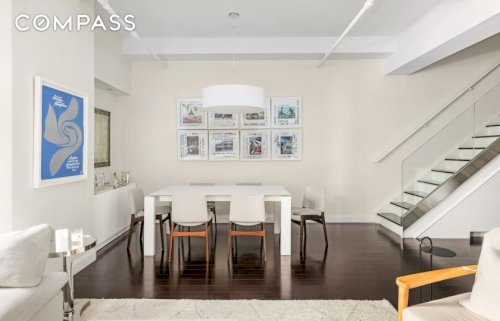 Modern Luxury Meets Historic Character in the Heart of NoHo\n\nWelcome to Residence 803 at the renowned Silk Building, a rare offering of style, scale, and history. Beautifully renovated, this two-bedroom, two-bath duplex is ideally positioned on one of NoHo’s most iconic blocks.\n\nSoaring 10-foot 4-inch ceilings, wide-plank floors, western exposure, and a pin-drop-quiet interior create a chic and lofty atmosphere.
