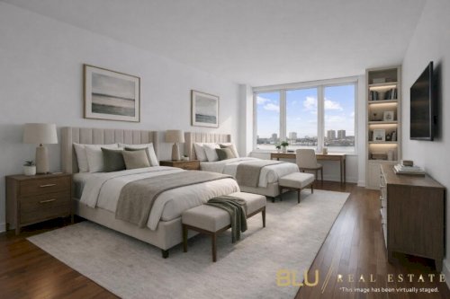 Welcome home to Residence 1D at River & Warren. This spacious two-bedroom, two-bathroom corner residence offers a thoughtfully designed split layout, highlighted by double exposures and abundant natural light throughout. Enjoy beautiful southwest-facing views of Rockefeller Park and the Hudson River from six windows in the oversized living room, creating a bright and inviting space perfect for both relaxing and entertaining.
