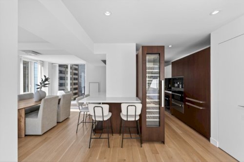Stunning 2,227 sq ft, 4BR, 3.5BA residence at 135 W 52nd Street in Midtown Manhattan, designed by CetraRuddy to evoke NYC\'s glamour. Features white oak flooring, a sunlit Great Room with south- and west-facing windows, and an open Molteni kitchen with walnut cabinetry, Calacatta Vision marble, and Miele appliances. The Master Suite offers double exposures, dual walk-in closets, and a luxe ensuite with Siberian White tile...