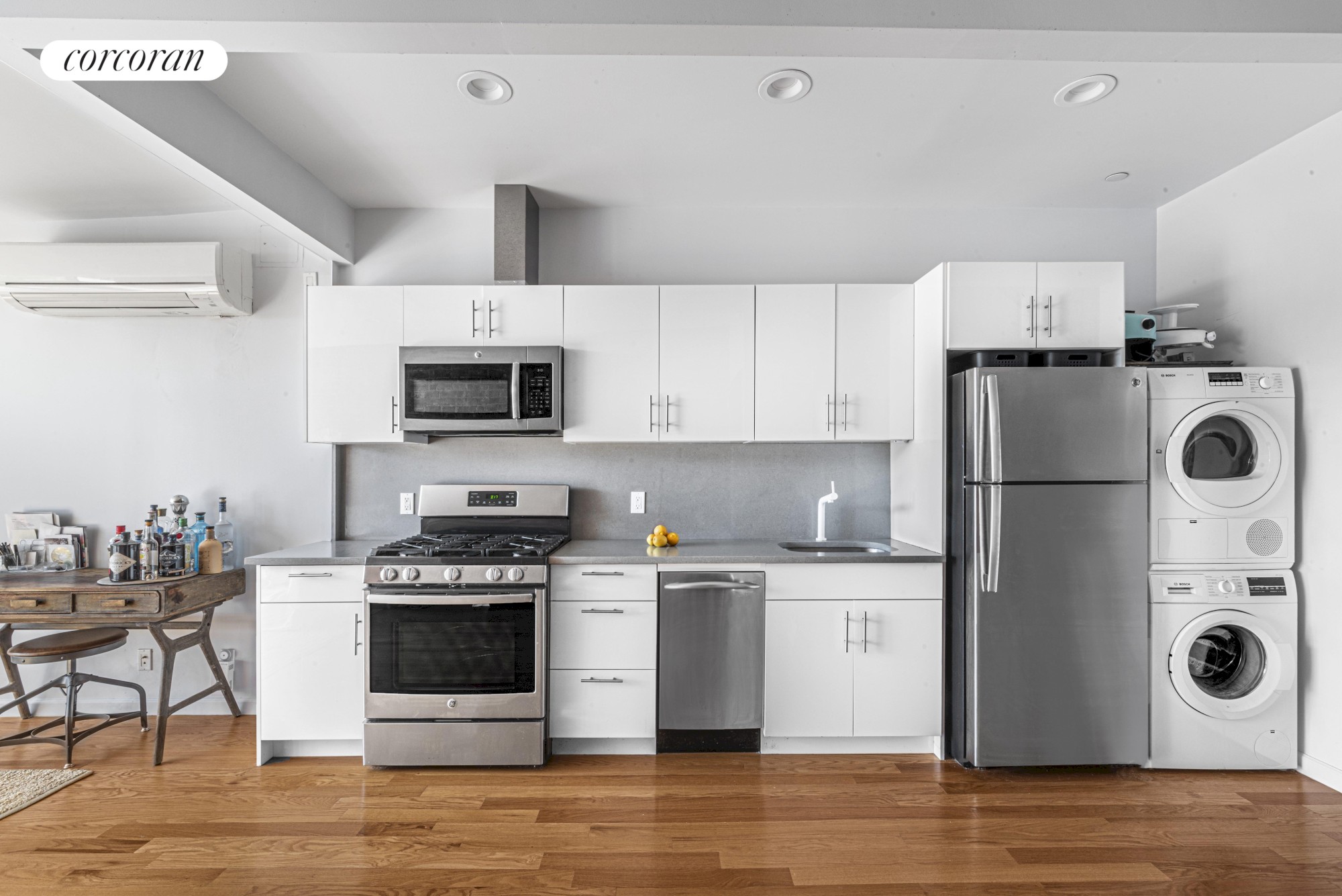 Experience the feeling of a pre-war loft in a modern setting-every unit features exposed brick, soaring ceiling heights and charming balconies. Furthermore, units feature stackable Bosch washer/dryer sets, stainless steel appliances, fully vented ranges, dishwasher, central A/C (mini-split HVAC systems), floor-to-ceiling windows, recessed lighting and oak hardwood flooring throughout. Note that the building was completely renovated down to the studs, including brand new electrical, windows, hot water heaters, appliances and commercial sprinkler system. The building's Neo-Grecian fa ade was restored to perfection.