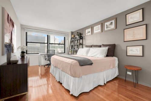 Perfectly positioned in the heart of Midtown East, Residence 6S at 225 East 57th Street offers a beautifully maintained one-bedroom home in a full-service cooperative-ideal as a primary residence or pied-à-terre, and a smart investment in both location and lifestyle. This spacious one-bedroom features a bright, airy layout with hardwood floors and exceptional storage throughout-including a coat closet, bedroom closet...