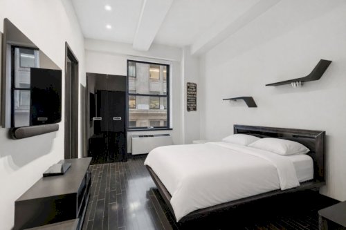 This spacious, oversized loft-style studio offers 926 square feet of thoughtfully designed living that blends comfort, style, and versatility. Fully furnished if desired and move-in ready, it's perfectly suited for modern city life. Soaring 11-foot beamed ceilings and oversized windows flood the apartment with natural light, creating an open, airy atmosphere. Warm blonde floors add elegance and complement the contemporary...